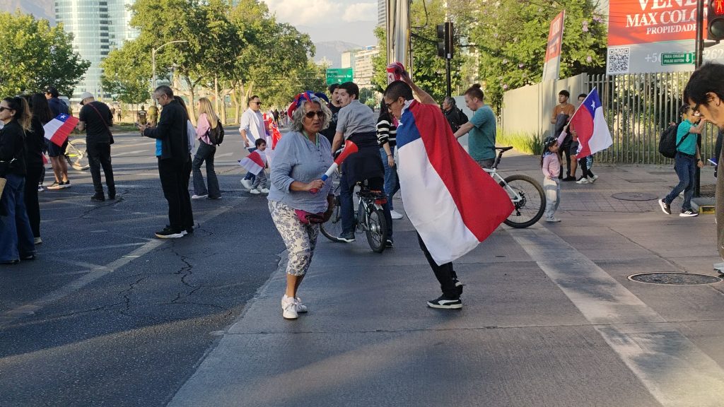Lejos de los festejos, un clima de tensión creciente se encargó de anular toda posibilidad de un festejo tranquilo en la popular plaza de Santiago. Los bocinazos de adherentes en vehículo al candidato del Partido Republicano se enfrentaban con los insultos de los jóvenes que caminaban por el lugar.